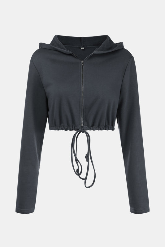 Zip Up Drawstring Cropped Hoodie and Pants Set