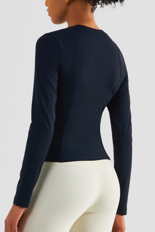 Seam Detail Round Neck Long Sleeve Sports Top