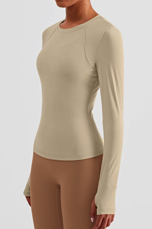 Round Neck Thumbhole Sleeve Sports Top