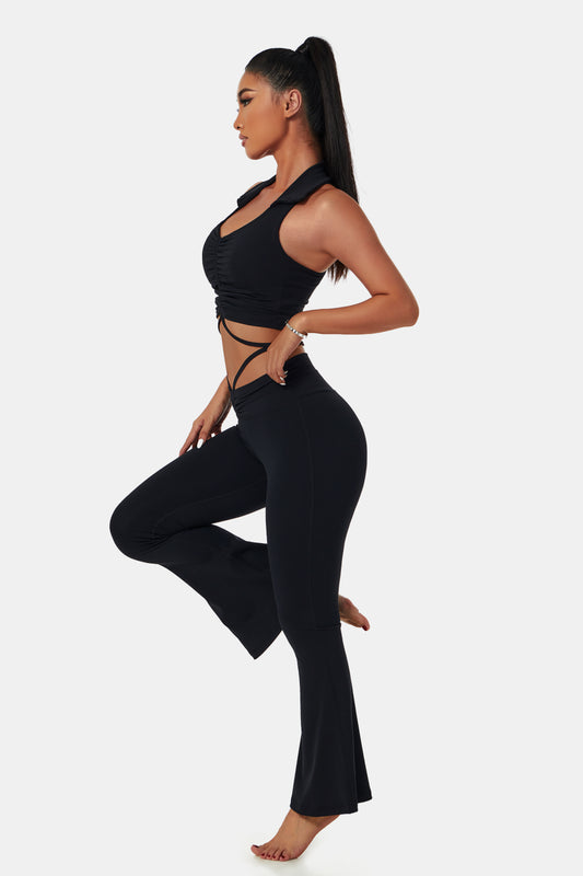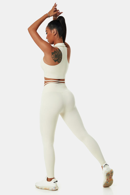 Collared Drawstring Detail Sports Bra and Leggings Set