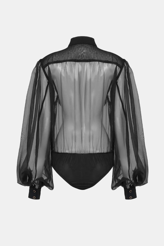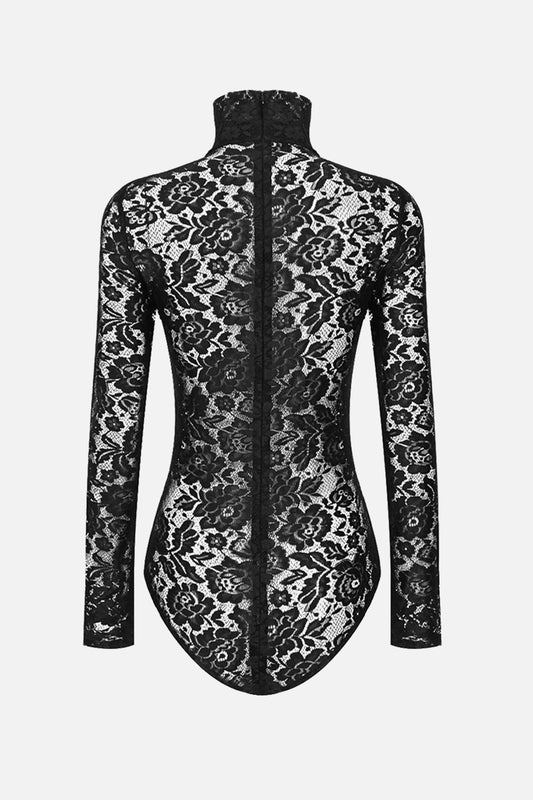 Lace Spliced Mesh Adjustable Strap Bodysuit