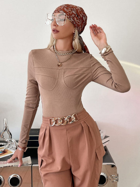 Sold outRibbed Mock Neck Thumbhole Bodysuit