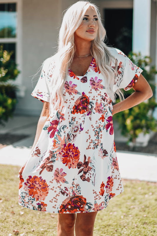 Floral Square Neck Long Balloon Sleeve Mini Dress