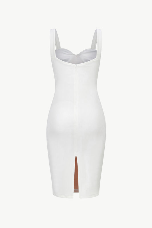 Ruched Zip Detail Spaghetti Strap Split Dress