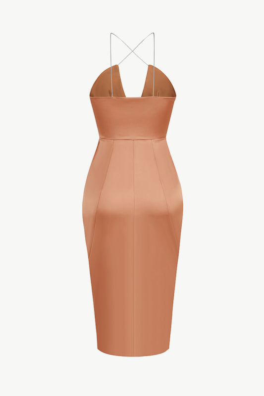 Rhinestone Chain Detail Lace-Up Ruched Split Maxi Dress