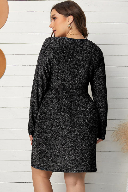 Plus Size Glitter V-Neck Long Sleeve Dress