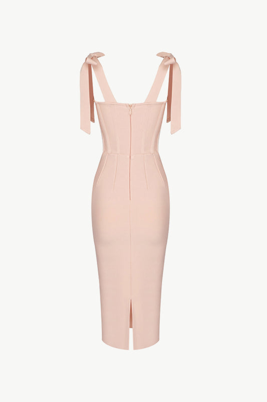 Lace Trim Sweetheart Neck Slit Bandage Dress