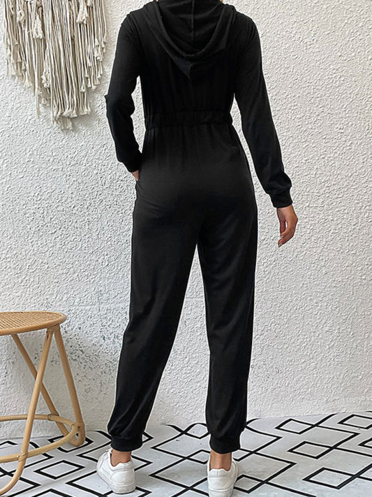 Zip Up Elastic Waist Hooded Jogger Jumpsuit