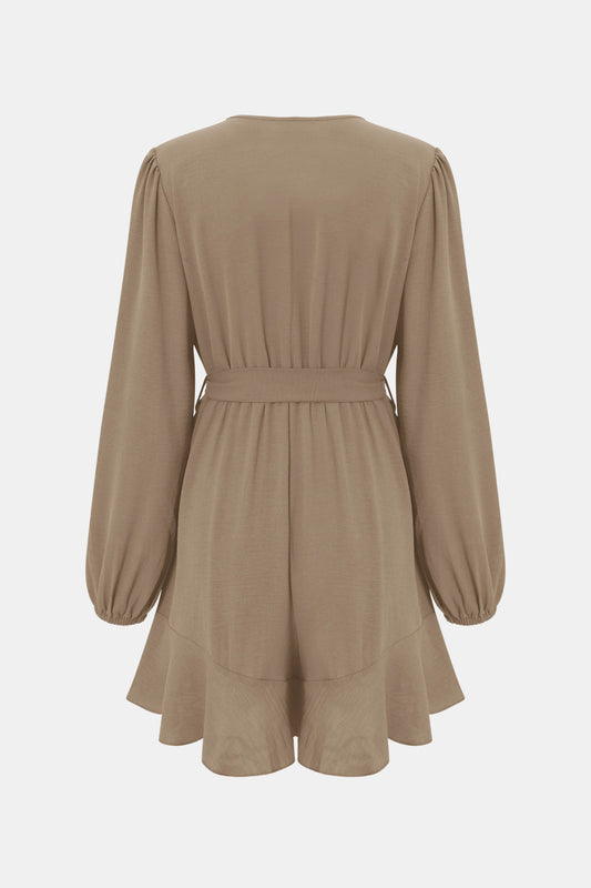 Tie-Waist Balloon Sleeve Ruffled Surplice Romper