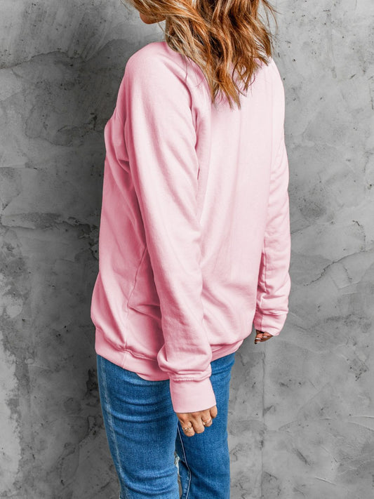 Christmas Letter Graphic Ribbed Trim Sweatshirt