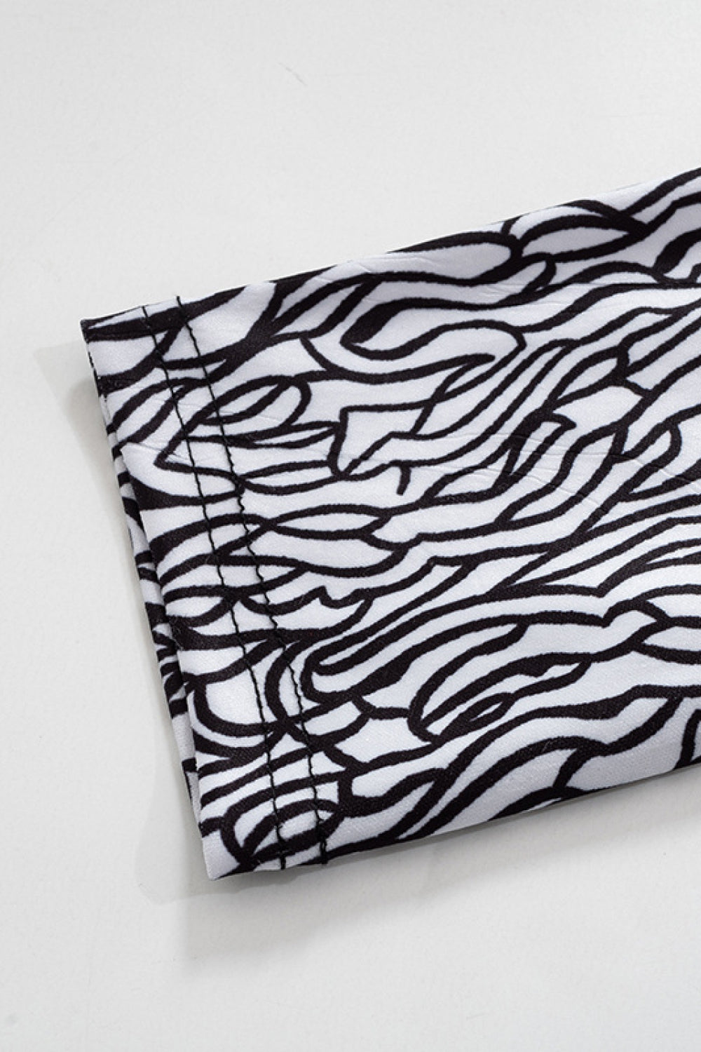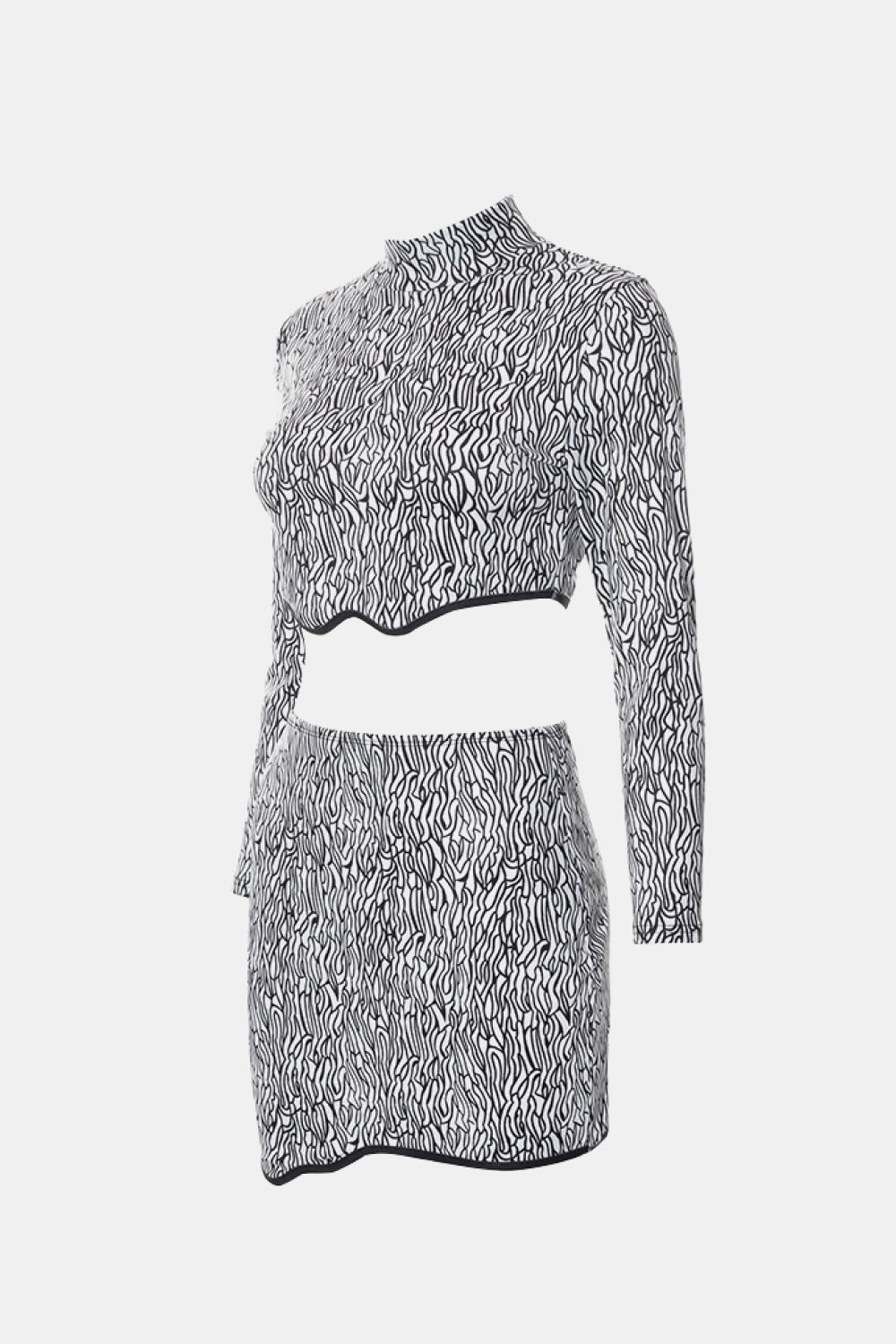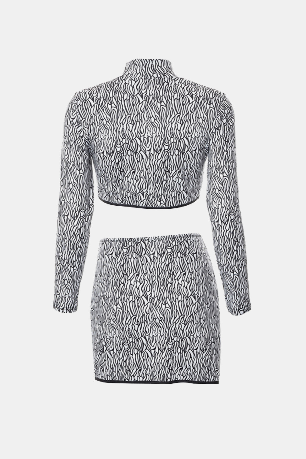 Abstract Print Mock Neck Cropped Top and Skirt Set