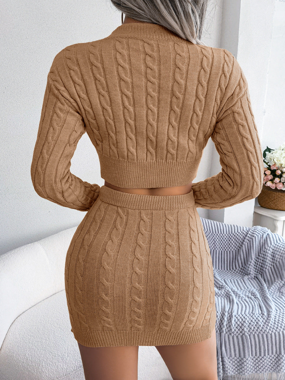 Cable-Knit Cropped Sweater and Knit Skirt Set