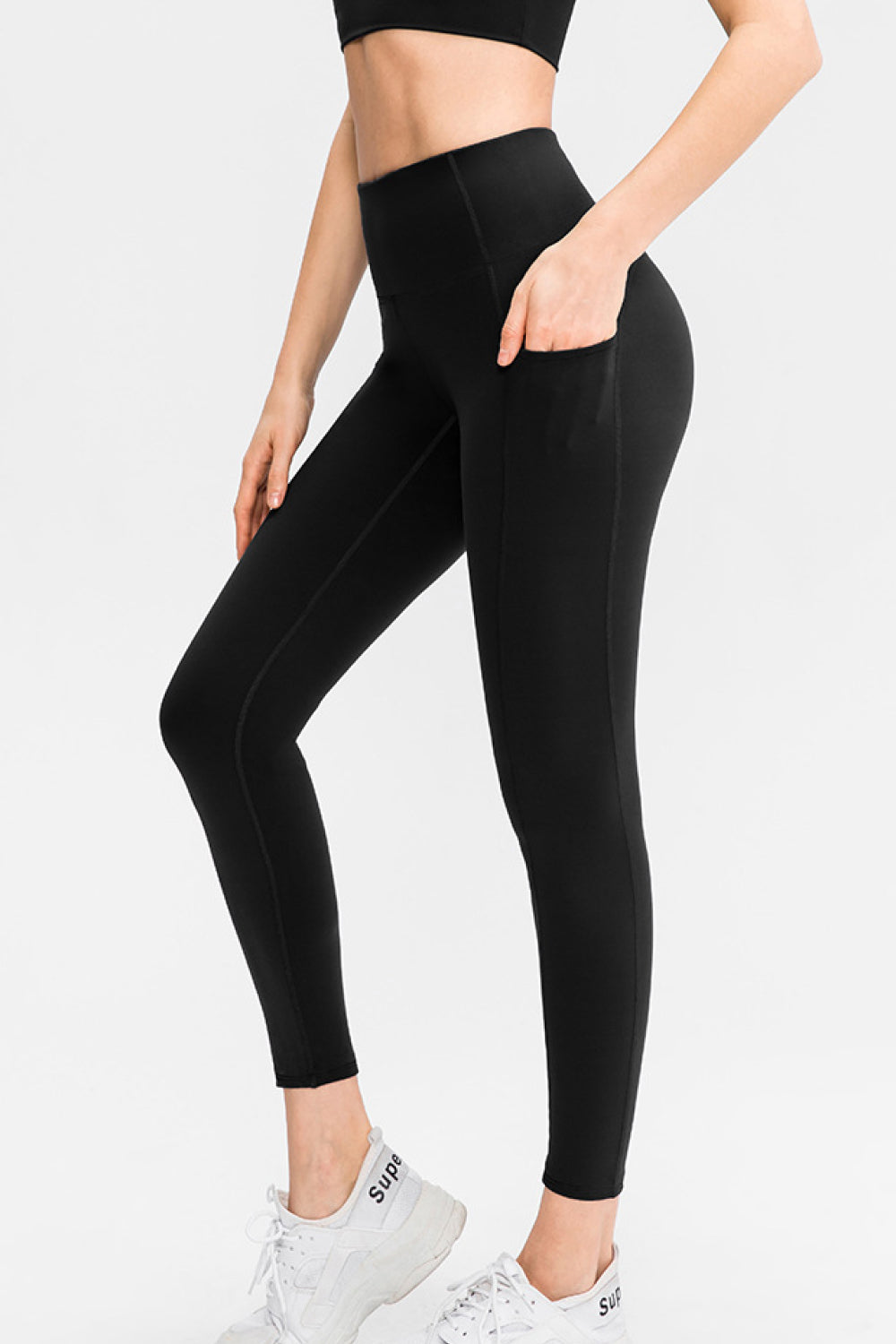 Pocketed Elastic Waistband Yoga Leggings