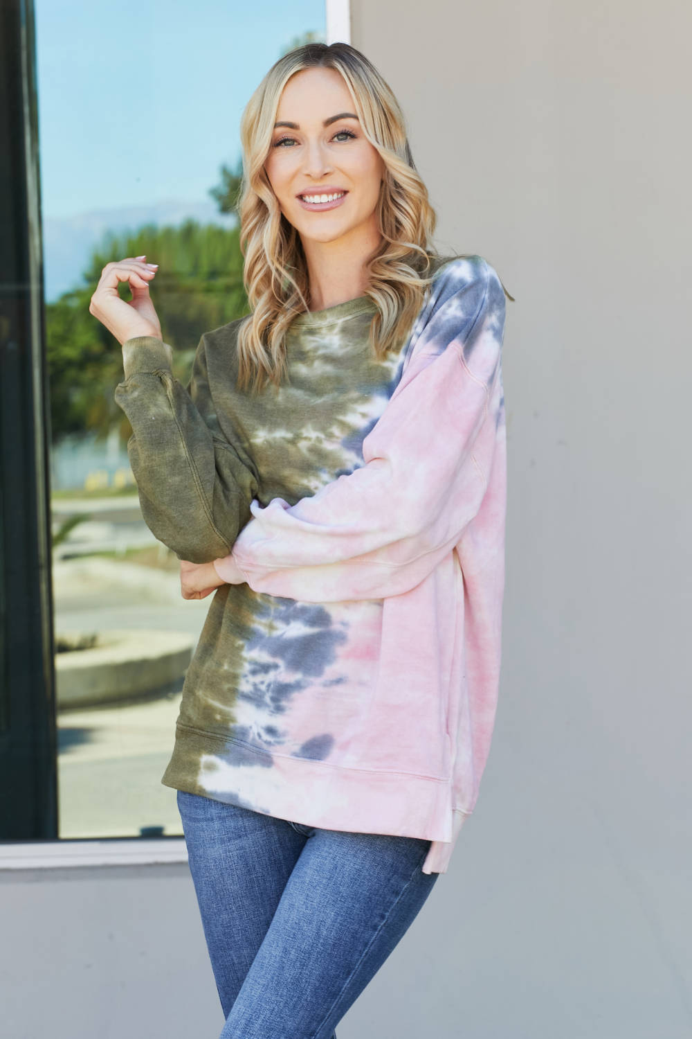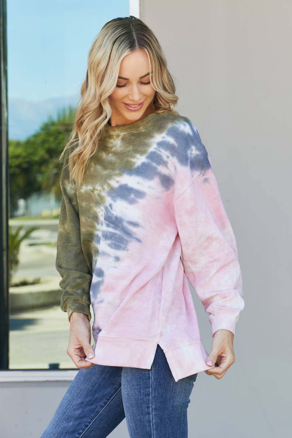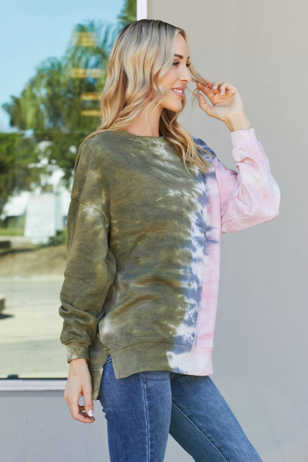 Sew In Love Full Size Tie-Dye Seam Detail Sweatshirt