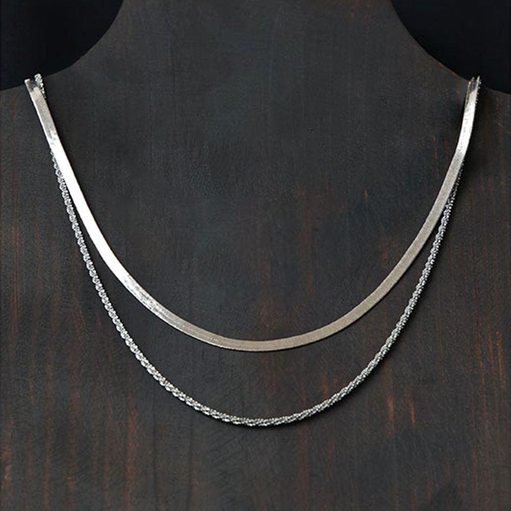 Our Snake Chain and Rope Chain Necklace Set in Silver is a durable, beautiful piece of jewelry. Featuring a double-layered necklace with a lobster clasp, this set always looks its best. Adjustable to suit your personal style, it’s no wonder why this is one of our most popular jewelry purchases.