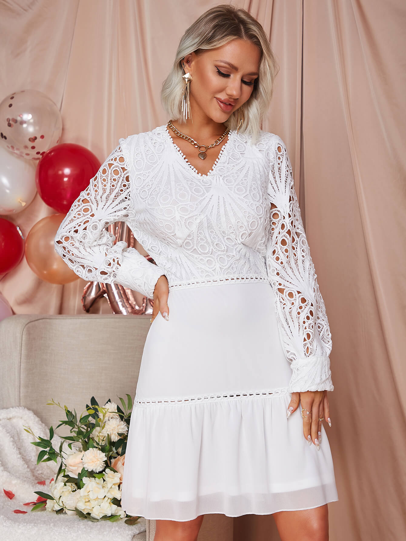 - Features: Lace, ruffle