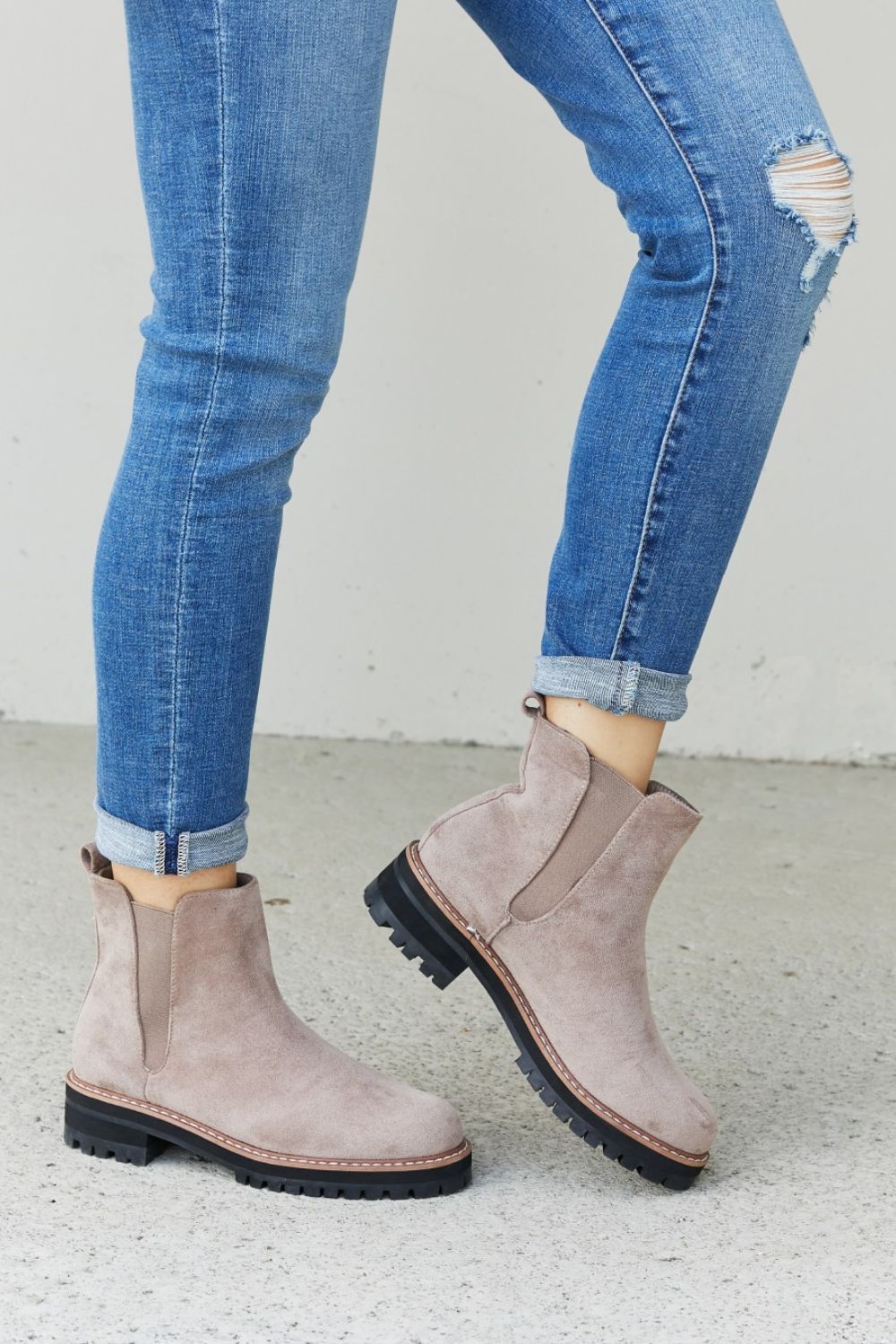 This classic bootie featuring elastic panel details and a faux leather upper is perfect for your fall/winter wardrobe. The low heel height and block heel shape ensure comfort during all your adventures.