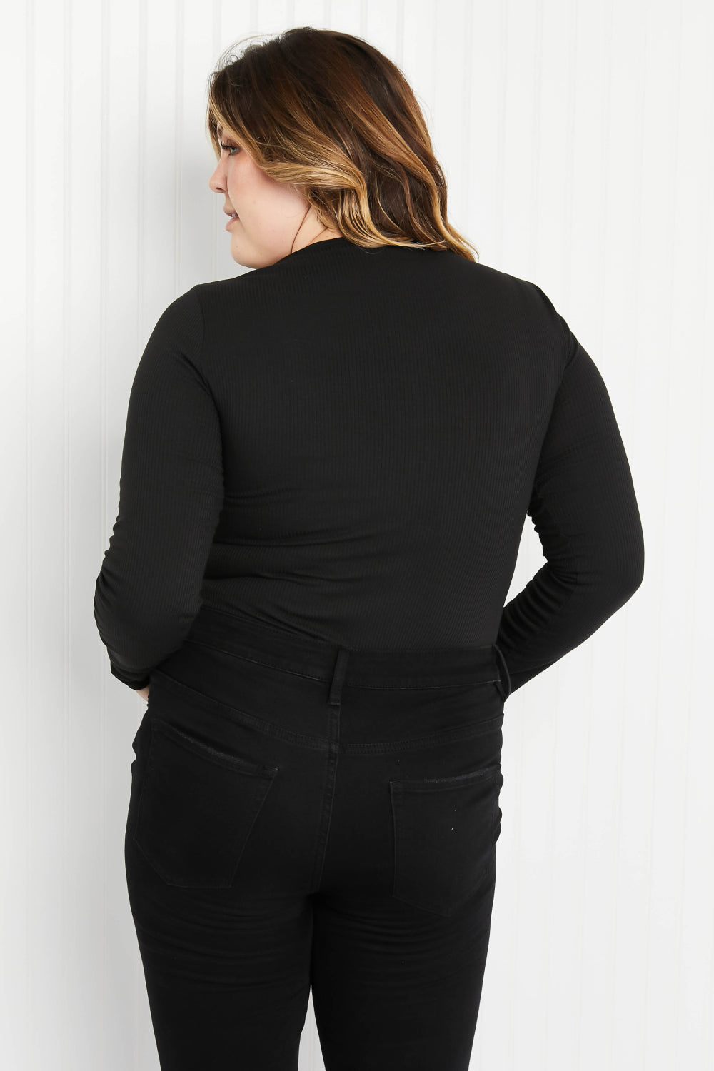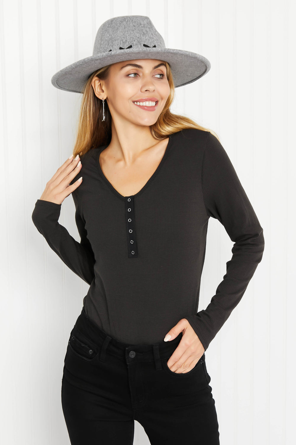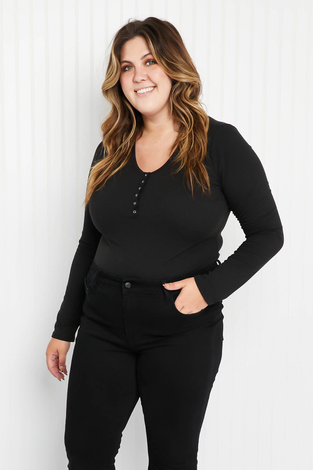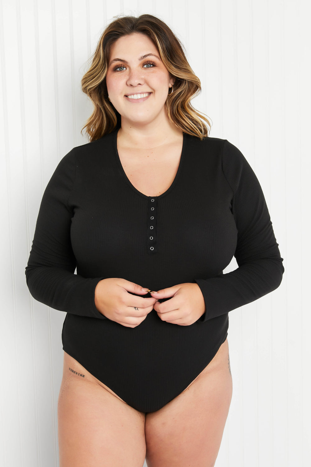 White Birch Lifelong Love Full Size Ribbed Snap Henley Bodysuit